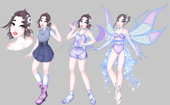 Her Glimmerix has been done twice now. The first one wasn't too bad but it didn't do her justice that well. The wings also needed a bit of a redo, and I like them far more. Her charm I wanted to look like a snowflake, cause Nitrogen freezes things but it kinda looks like a web and that's fine too. XDI did add enough of reveal on the hips so I added more on this one, shortened then boots, revealed the toes, and made her sleeves be like fingerless gloves at the end. The next one is enchantix which, I REALLY need to finish... some point.