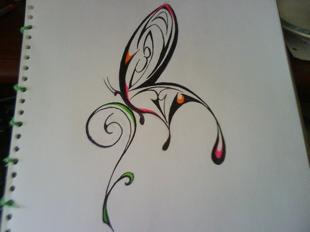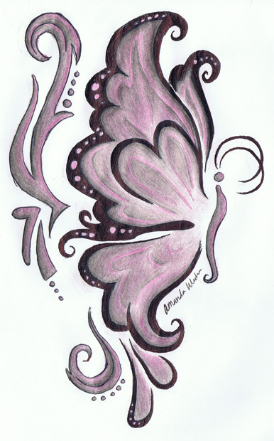 My first-ever tattoo design! Drawn on watercoloured paper and then written around in my sketchbook, so after scanning I had to edit out the writing and I did a really awful job.I tried to make a masculine-looking butterfly; did I succeed? I think this would look good on a man's pectoral.