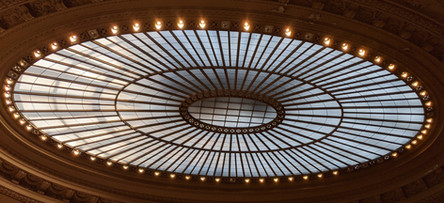 Part of a building at the Flagler museum at Whitehall. This building is not authentic, but was built in 2004 to house Mr. Flagler's personal railroad car. It was meant to imitate the style of the "railroad palaces" of the late 19th century. Unfortunately, the museum does not have access to the kind of money Mr. Flagler had, so the "aged copper" is spray-painted cement. Not too convincing. The architecture is still beautiful.Mr. Flagler was the railroad and luxury hotel tycoon who essentially created South Florida. He was exactly the type of entrepreneur I admire so.
