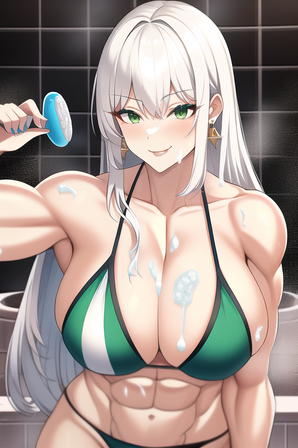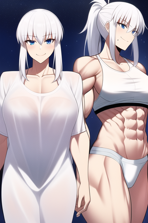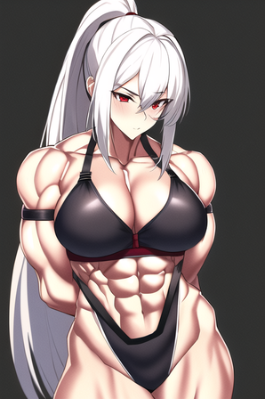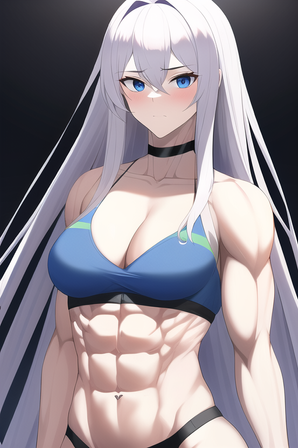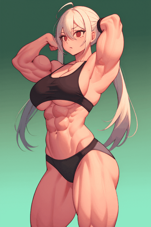 #abs #biceps #greeneyedgirl #muscular #muscularfemale #whitehairgirl #underboob