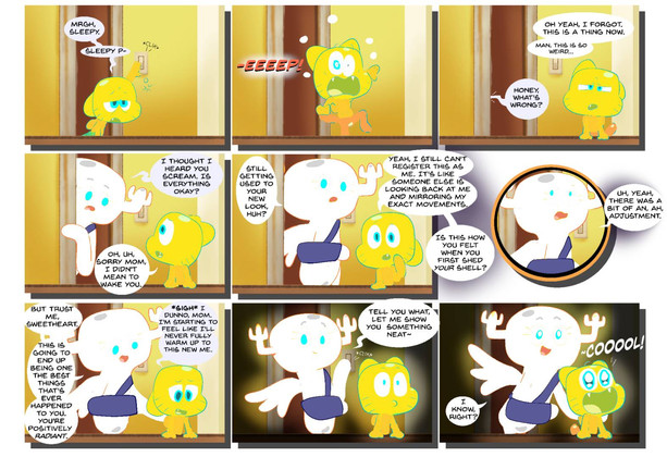 I actually had a story in mind where early on in their marriage, Gumball instinctively turns away from Penny while they're sleeping, leaving her to wonder if he still loves her or not, when it turns out it was just because of her glow (Gumball mainly assumed that a light was left on somewhere, but was too tired to get up to turn it off).