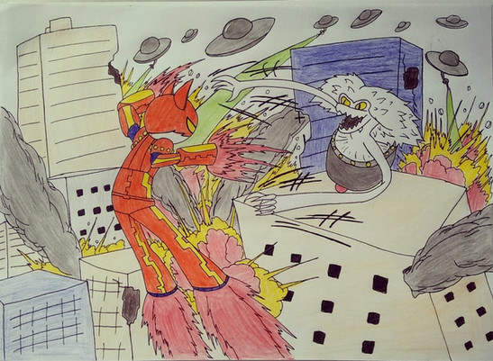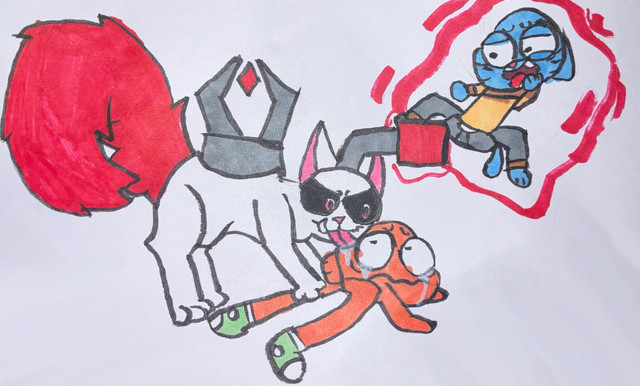 I think I stated this before in a previous description, but while his mother shapeshifts into animals and mythological creatures, Zachary's morphs are more sci-fi inspired. Penny turns into a dragon when she gets mad, her son turns into a giant fighting mech.Gumball and Kenneth belong to Cartoon Network / Ben Bocquelet.