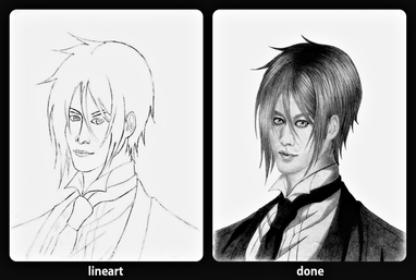 The work in his eyes are so pretty, such a powerful gaze But maybe a bit more of shading in his hair would be good?
