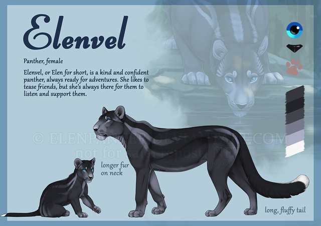 Bengali was an orphaned melanistic snow leopard from Morway, which was always thought of as curse form God. After roaming the Great Forests of her home region, a young dragon and his poverty stricken family were traveling back to Dorelay and the two ended up being attached at the hip. Now being older, Bengali has grown to try to attempt to help her scaled family in any way possible, even if it means thievery. However, one day, her luck just about ran out and she was captured along with her best friend Archer by the Dorelay guards. In her attempts of escape, she ended up making vines and rocks trap the guards. Not having time to think, she hastily escaped with Archer and was forced stay in the shadows more than she already was.