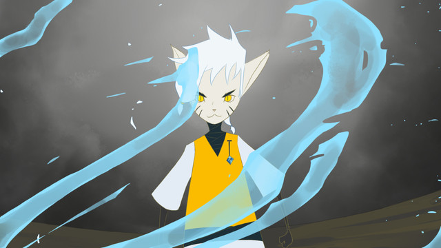 me gustΓ³ que todo vaya en direcciΓ³n al fuego-poder-espada de la chiquilla, y la pose es como que esta a punto de pegarme con su arma. Me agrada