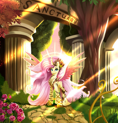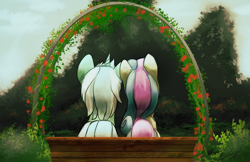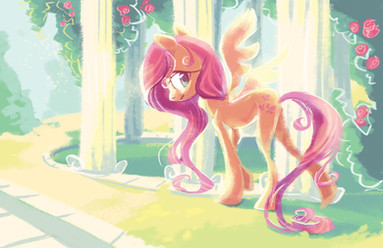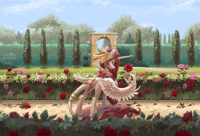 While Fausticorn and the foreground are indeed nice, some of the background stands out in something of a bad way. The lack of detail on the potted plants atop the columns, and the roses climbing said columns, seems odd as they don't seem to be quite that far away compared to the foreground figures. Also, the "FAUST" lettering on the arch doesn't conform to the shading you gave it, making it look like it was pasted on top of the arch rather than being part of it. In spite of those small nitpicks, I still think this is an excellent piece. Keep it up, BC!