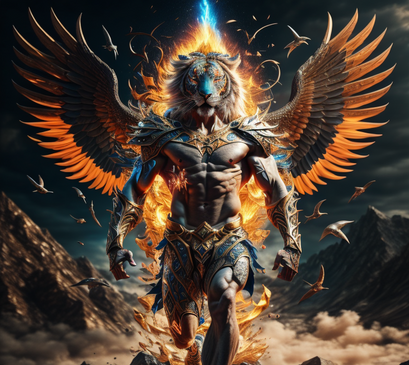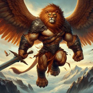 #animal #armour #demon #fantasy #fighter #griffin #king #lion #mutation #mythology #warrior #weapons #wings #volkerloschek #blindguar