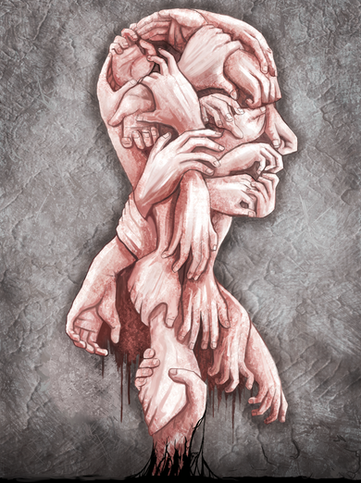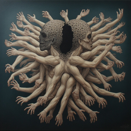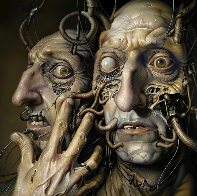 #fog #bizarre #bodies #communication #connection #dark #depth #faceless #faces #hands #holes #people #surreal #turmoil #wires