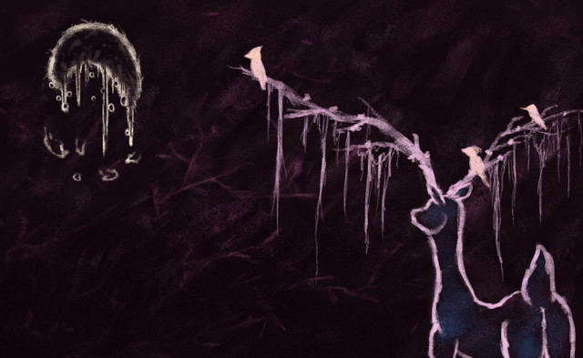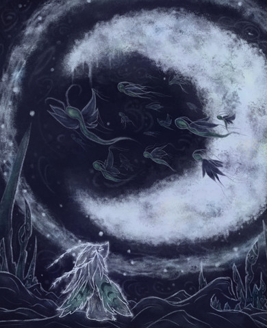#animal #bat #dark #fantasy #galaxy #ice #illustration #key #moon #mountains #mystical #mythical #spirit #spiritual #stars #story #void