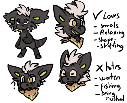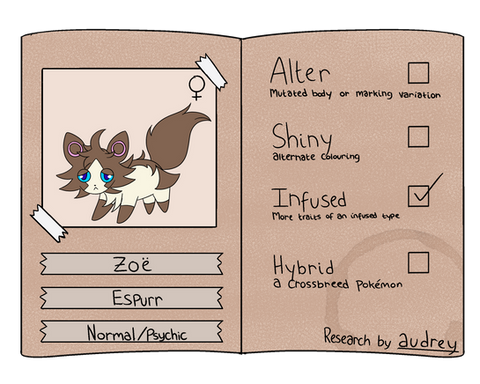 > They're extremely curious about pokemon and can and will find any way to study them. Their favorite pastime is doodling pokemon while noting down information about them. They can be hissy if you disturb their focus and will deliver angry looks, sass remarks, and to the extreme even scratches. They blend in with pokemon so well that pokemon also get curious about Azu and come check them out as well.