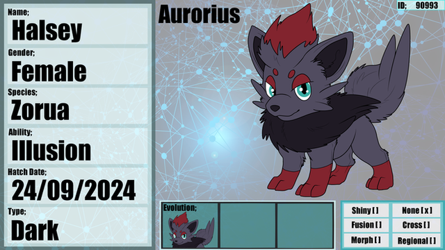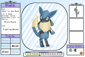 Slot nΒΊ: 35Name: Riley Gender: Female Species: Zorua/Eevee Traits: Hybrid/Alter Type: Normal/Dark Level: 26 Level Log:
