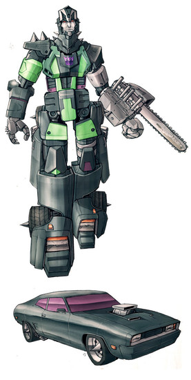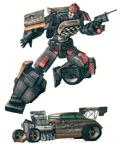 I would love to see this version made into an actual figure. X-Brwn/Wildride COULD have been such a cool figure, but with so much kibble on that left arm of his, and only one actual hand (the other was a stump with hand-shaped grooves on the toy, if memory serves)... it was found wanting...