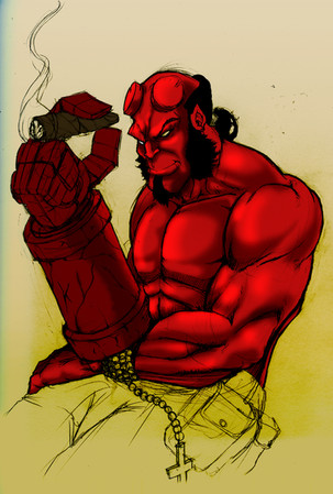This Hellboy drawing is incridibly awesome, and he is so MANLY!!!