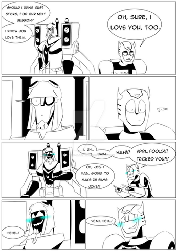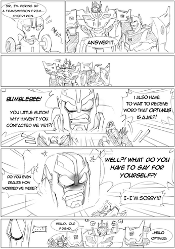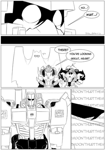 I was surprised about Sideswipe being THAT cocky in front of Optimus. And Prime being so firm with his answer afterwards.Β Anyway, funny and cute little comic. Loving the expression, hah ! xD