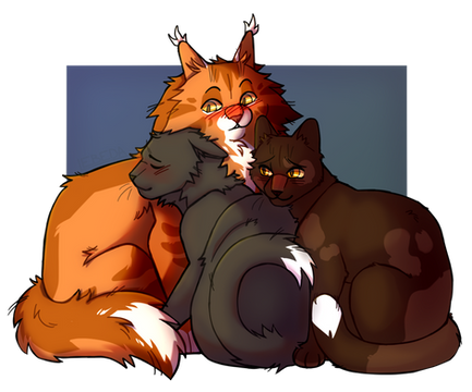 redraw time! this one was a redraw of a doodle from back in 2017 that was never quite made public of some wholesome retri <3the original had only flame and star, i was going to throw in night but realized i had no clue how to. so, in this redraw, i decided to fix this so we can have some trio cuddles! you can see the improvement in both my akarah anatomy and my designs, im really proud of how far ive come in the past two years c':
