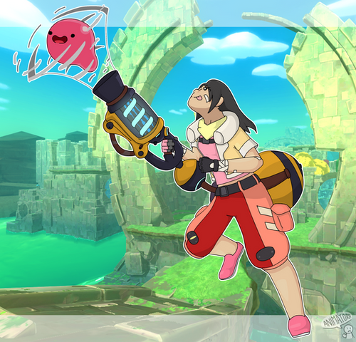 #beatrix #highangle #slimes #pinkslime #puddleslime #tabbyslime #vacgun #slimerancher #slimerancherfanart #beatrixlebeau