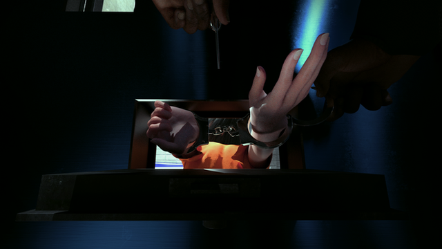 Somehow the cell feels both grimy and sterile. The guard orders her to "step inside", in a calm, professional, yet commanding tone that holds no malice. The new resident feels like she's drowning as she takes her first steps into a bleak six by eight foot concrete and metal box, with only a blue vinyl ticking mattress for a shred of comfort.Related content