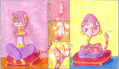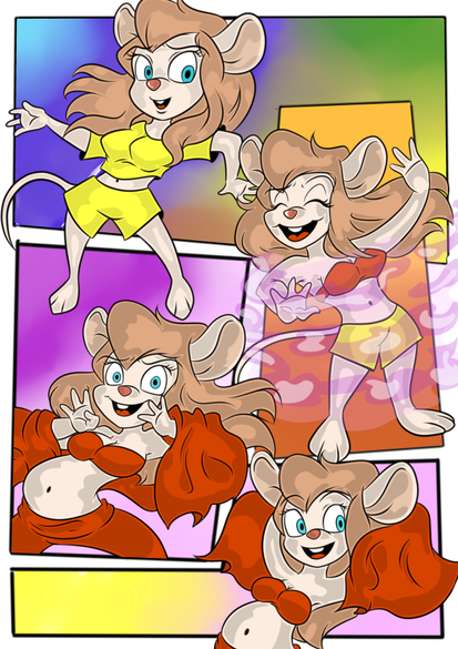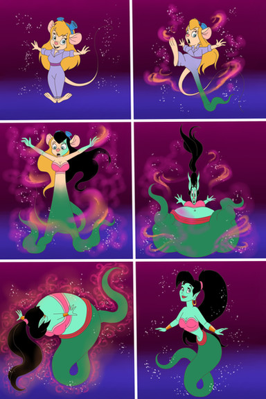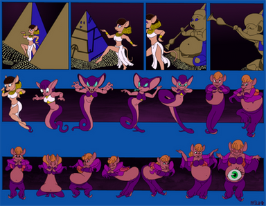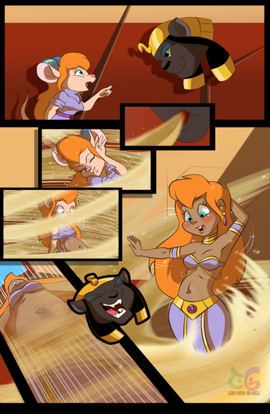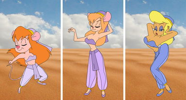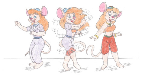 As a reaction to the music, Gadget, stretches out in circles, transforming into a Cobra before performing another transformation. Turning back into her Mouse Form, dressed as a Belly Dancer.