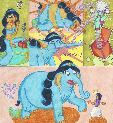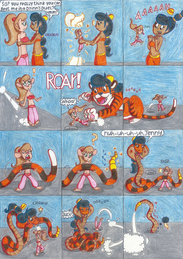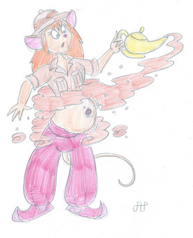 Gadget, in the form of a Camel wanders through the desert during the evening. But at a distant, Beryl materialize from out on an ancient jar, in the form of a Genie Mouse and began to play a mystical tune on her flute.