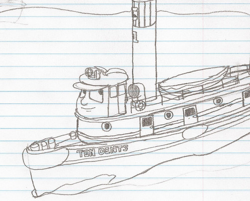 Boomer is a character who appeared in the British TV series, TUGS. Boomer first appeared in the episode, Jinxed.Kind a caring, Boomer is a tug who would be willing to do any job if it weren't for one little problem... He was a jinx. "I used to be called Captain Harry, but then I was sold and my new owner painted out my old name and called me Boomer. That's when all the trouble started," is what Boomer told Ten Cents and Sunshine. Throughout the episode Boomer suffered from several unfortunate events. He even started to sink! Fortunatly he landed on an old sunken garbage barge and was only sunk half-way. Afterwards he was sold to the Z-stacks, but after a munitions barge, that he was pulling, blew up he was quickly sent back to the Star Tugs and was given jobs where nothing could go wrong. Unfortunatly, one day Boomer was taking a boat out to sea and it caught fire. After that Captain Star declared that Boomer was never to be used as a tug again. Ten Cents and Sunshine took Boomer to Lucky's Yard. Two weeks later they were sent to take Boomer up river. They thought that they were taking Boomer up river so he could be sunk, but instead they found out that Boomer was converted into a house boat and they took him to a place that was ironically called, Dun' Tuggin'. Now Boomer lives happily up river and the jinx is finally gone.