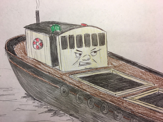 Smoker is another one of my characters.Smoker is an ocean going tug who is acts like a true sailor. He's rough and tough. He's had many adventures out of the open sea. He's traveled the world. He's traveled to places like the U.S. and all the way to Japan. He's strong and brave. Tugs claim that he isn't afraid of anything. He's a tug who is idolized by many poeple throughout all of Sinnoh. He is revered as the greatest tug in all of Sinnoh. The reason he's called Smoker isn't because he likes the smell of smoke or that he does smoke, it's because he puts out more smoke then any tugboat in all of Sinnoh. Smoker is brave, honest, tough, strong, smart, loyal, thoughtful, and has a heart of gold. He is the greatest tug I have ever had.