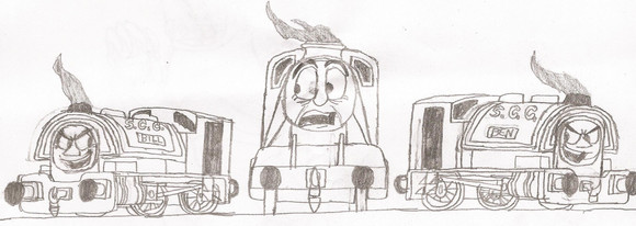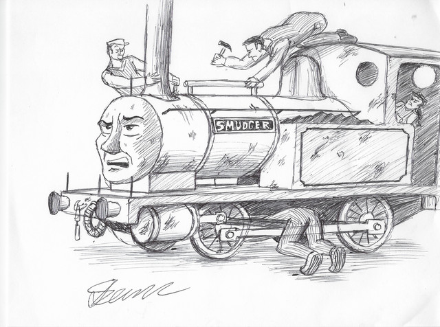 The final part of 's request. It's Smudger, the cocky and arrogant steam engine from Thomas and Friends.Duke: Smudger..... Was a show off.... He rode roughly and often came off the rails... I warned him to be careful, but he took no notice... "Listen Dukey," he snarled, "Who worries about a few spills?" "We do here," I said... But Smudger just laughed... Until one day the manager came and said he'd make him useful at last. Smudger wasn't laughing then...