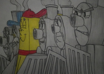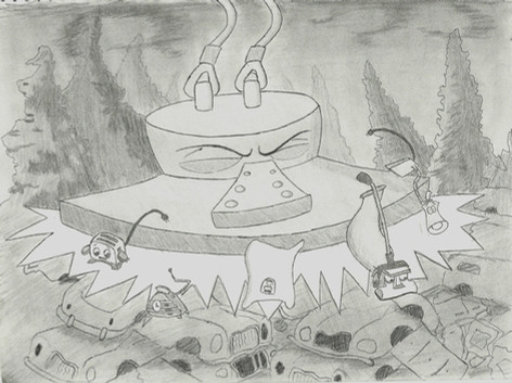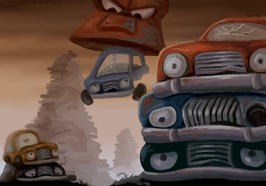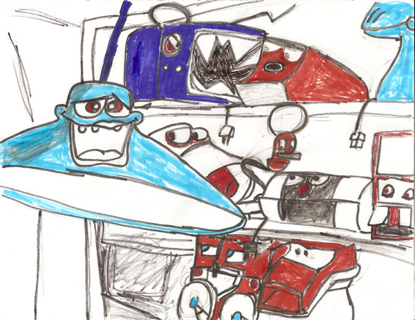 For some reason I like how you did the Pink 50's Convertible the most, she looks different then she looked in the movie, but different as in better. I guess you ran out of pencil for the Woodie huh? The only thing I'd mark down on, and this is really just me, is that you forgot to put all the cool moving machinery behind the crusher there.