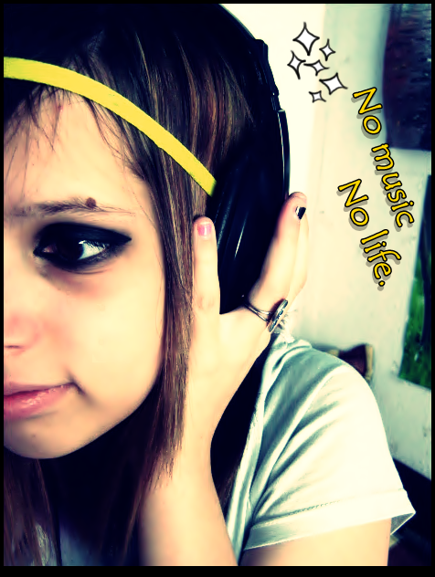 Music has alot to do with my life, I need it to draw, pass time, and rave. I'd be insane with out it.I got new headphones, so I thought, why not take a picture with them?