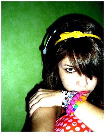 Cool headphones. ^^ You are also so pretty. And I want your shirt and necklaces. *steals*