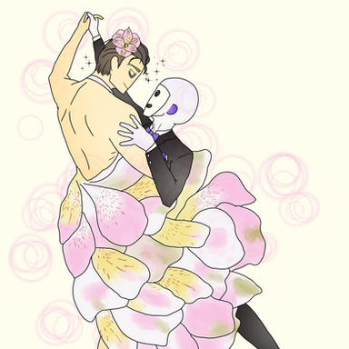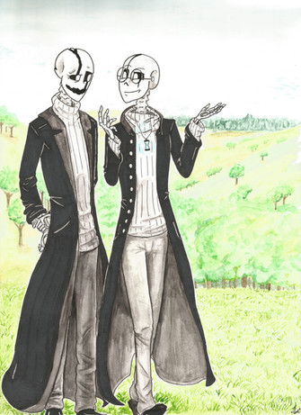another one of the #skelemonth prompts, this one for papcest, formal wear; i've been looking for an excuse to draw mander and ketch's wedding outfits for a while now
