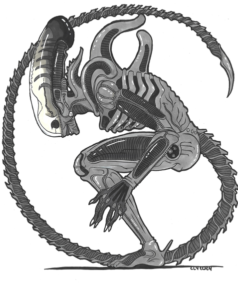 draw it with a pencil and black ink[I claim no ownership of the character used in this image. Characters of Alien belong to their creator Ridley Scott as well as Twentieth Century-Fox.]