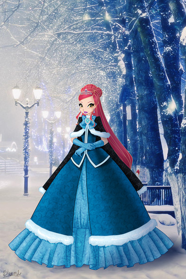 The Colors are perfect chosen! i love the ruffles with the flowers!! The snowflakes makes everything perfect <3 I love dresses with a long end <3 they look so graceful! That Blue is the perfect blue for Jenna! OMG i can't believe it, she looks so damn beautiful!