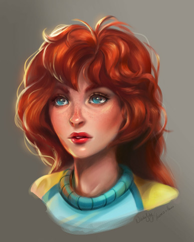 Рисунок получился просто потрясающим. *з* Глаза,волосы,кожа,губы...Все просто превосходно нарисовано. Эйприл даже немного смахивает на фею Блум из мультфильма Винкс цветом волос и глаз. :д