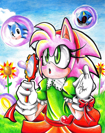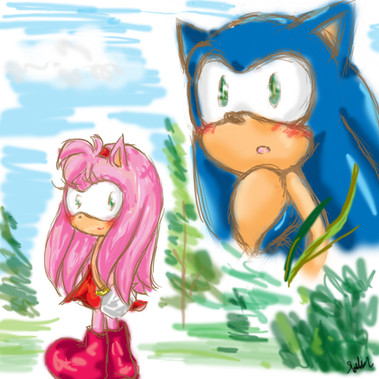 Хах!Посмотрела, я где Эми с длинными волосиками и мне тож захотелось её нарисовать так)Рассчитывала ток Эми нарисовать,но вышло так х) Сонику идёт жилетка х3 И ещё, я решила показать одну прелесть XD Я про юбку и ну догадаетесь)