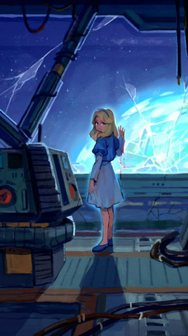 While I was painting Maria, I did not know what mood I want to convey. As a result, in the process of drawing, I decided to show her as a ghost on a crumbling ARK colony. What a sad fate she has(Related content