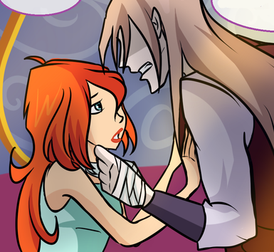 When Bloom got an emergency phone call from Roxy all she could think about was getting to Roxy on time before her dog R2 finally lost it. R2 is Roxy's best pet dog, but lately he's been very aggressive towards Roxy. Flora couldn't figure out what was wrong with him so they had to put him in the dog pound, until Roxy came by to see how he was doing that's when it happened. R2 broke through the cage and attacked Roxy right on the spot. He was ripping at her flesh and she didn't want to hurt her own best friend. When Bloom and the girls came they were blown away on how badly R2 was beating up on Roxy. Bloom quickly jumped in getting bitten and attacked also by protecting her cousin. As soon as Bloom got on top of Roxy she covered her with her own body to prevent more injuries on Roxy and refused to use her magic to hurt R2. The animal control finally got R2 under control and took him away, Bloom and Roxy were both beaten but Roxy was worse.