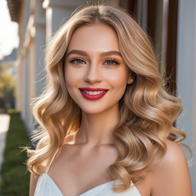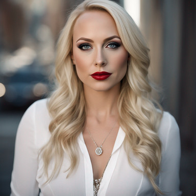 #portrait #beauty #ai #photorealistic #glamour #photography #dress #portraitgirl #beautiful #blonde #cleavage #fine #flawless #fresh #gorgeous #hair #perfect #redlipstick #waves