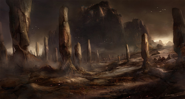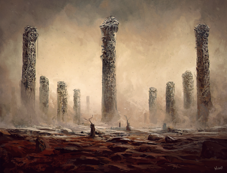 #beksinski #fantasy #hommage #isolated #landscape #painting #pillars #tribute #perspective