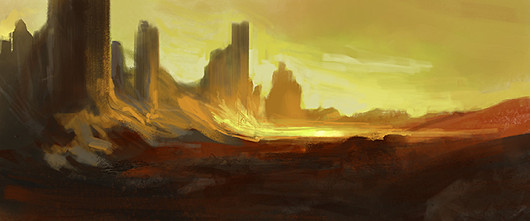 I like the colors u used with the fire seen at the distant a mix of more yellow and pale red and merging with white and sky blue. Fantastic . And the area of land seen near looks more like a water.It maybe water or mirage. Anyways i like the rest of the piece.