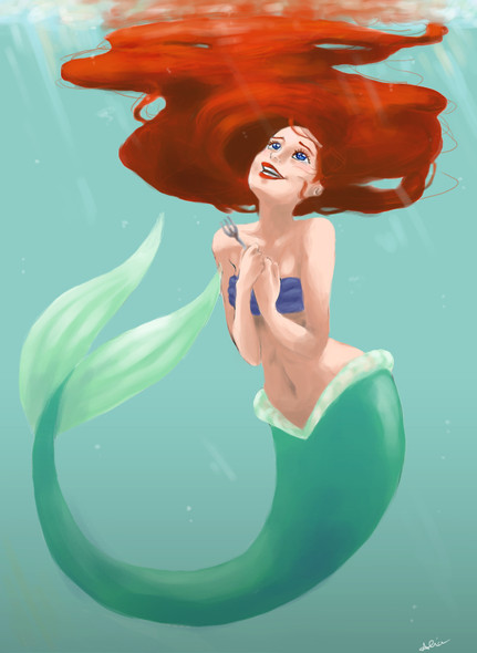 Just a quick-ish fanart of Ariel to get used to colouring and sketching with my cintiq. Drew it without any references too! (so if the body is off, meh). Finally learnt how to play with brushes and sensitivity in Photoshop @__@ been needing to know that for months now.Ariel (c) Disney