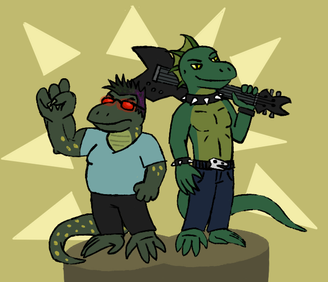 I'm practicing drawing Dionians full-body, which is hard because I've never drawn characters with digitigrade legs before. I'm also working on the rough drafts of a Dionian language and an alphabet, which is a colossal task on its own. I might post some stuff on the Dionian language at some point, in case you're interested with seeing how it works.Zamak's basically saying "I want to meet Mickey Mouse! The humans have a lot of respect for him!" Granted, I'm not sure how humans would react to seeing reptilian aliens at Disneyland.