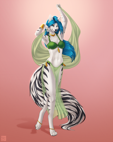 Sorry for being so terrible with answering notes and comments >3<' sorry, I read them. Sometimes twice, but for some reason I'm so slow with answering.Here's the second belly dancer c: for Tsuki-to-Hoshi her wolf shamaness Mi'Toko. I must say I'm super happy with this one, Little Shewolf you're my lucky commissioner ^^.