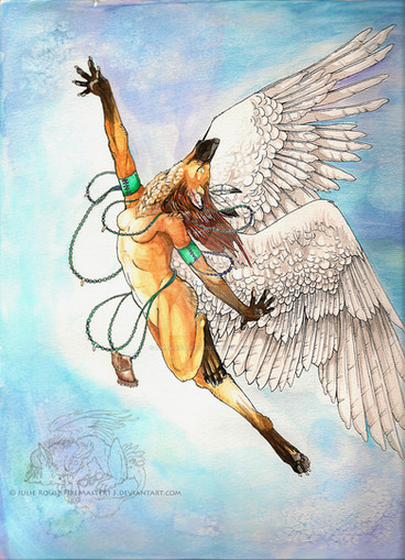 Oh... my... Of course you can be super giga happy with this piece ! And please be super proud too ! Because the final result on here is just stunning... So much mystical dynamic on here... And the pose, the effects, the colours, the light, her expression, everything is so lifeful. We can hear the drums and the singers and imagine her dancing to please the Gods. Just thanks to this drawing. So, yes, you did an amazing work with it ! Especially on the hair, fur, wings and outfit ! You have no idea how I love every single little part of this ! >_<
