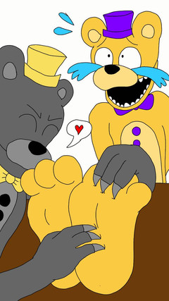 can i have a picture of NIGHTMARE being tickle on his feet by nigh5mare fredbear and hos toes wiggling alot plz