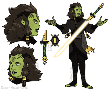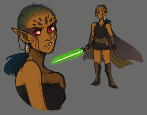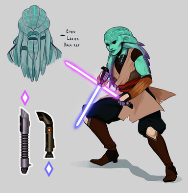 This is so cool looking, her hairstyle and lightsaber hilt look amazing and I made a star wars OCs of the same race!