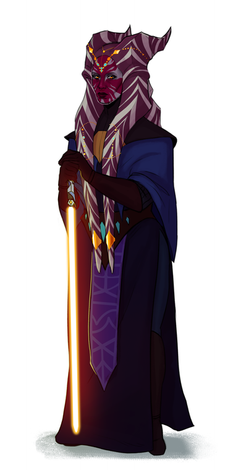 Rhea was born on the planet of Mirial. Her mother passed away some time after her birth and her father, who couldn't raise her by himself, gave her away to an orphanage of sorts. Rhea was much too young to remember them but later accepted her life peacefully in her new home. She was 4 years old when she met a Togruta Jedi who was visiting Mirial for a short period of time on a job. Upon meeting the Jedi, who seemed to have spotted hidden talent in the child, Rhea's curiosity about the Force and how it worked made them grow close to the point that they were inseparable at the time. A few weeks in of the Jedi's visit, she had found herself being told by the Mirialan headmasters that she was to be transported with said Jedi to another planet to begin her training. That Jedi was Zinto Ailé.