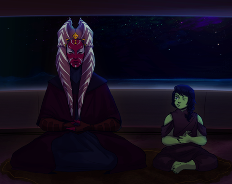 Unbeknownst to Rhea, through Zinto's strong ability to sense complex energies and fluctuations in the Force, she had felt the threat of a waging war between Mirial and some other party. Zinto's fear of losing Rhea and her potential, struck her enough to have her ask permission to bring the soon-to-be student from her home world to Coruscant.