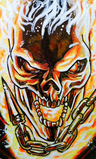 I agree with you on that I wish he didn't need that dang on motor cycle though YOU KNOW HOW complicated that makes him to draw lol, but yea you can't go wrong with a guy who's head is a flaming skull