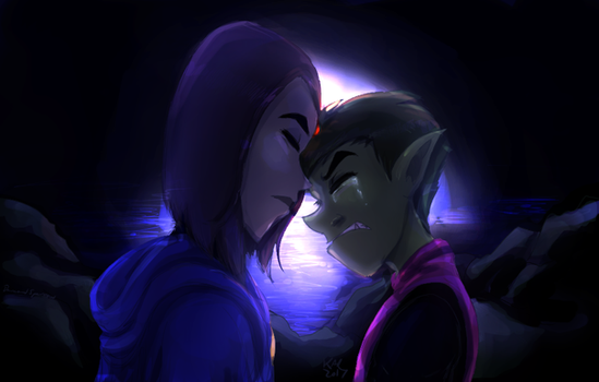 I for one love this couple and you have created something beautiful. The style you have drawn it in has an uncany resambalence to the actuall show. You can easily see the emotion both Raven and BeastBoy are protraying. It feels as though you are reading a book and it is giving you a perfect description of how the character is feeling. And the lighting has given it a more realistic feel.
