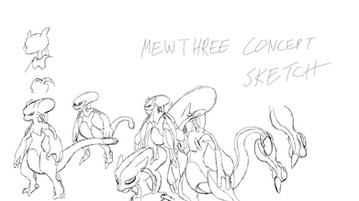 Ok, so we'll use this rather ugly looking frontal shot of Mewtwo, as a base to draw Mewtwo's armor. When drawing mechanical things, such as cars, planes, mecha's and Mewtwo's futuristic armor, it's very easy to get lost in the details. So first you need to establish the general shape of the armor, by roughly drawing its basic form (step 1 to 4). Keep in mind that the helmet curves around Mewtwo's ears/horns (see step 6 to 8) and that the chestpiece is in front of the two shoulderpieces. If you draw the shoulders in front of the chest, Mewtwo will look as if he's hunching over, and that doesn't make a very powerful impression. Also don't forget that the armor has a tailring, quite close to the base of the tail.